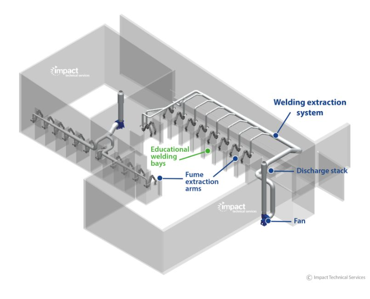 Design and installation of LEV systems suited to educational environments, from science labs to workshops. We ensure safe, effective extraction without disrupting teaching spaces.